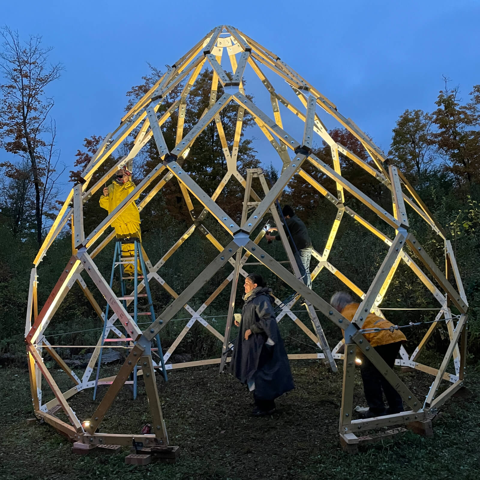 A wonderful collaboration on this first Zome project! After its debut at Campus Fab City Montréal here it is in its natural habitat at Terra Perma ! Design and construction by Vedanta Balbahadur, Raquel Penalosa from ékm architecture + aménagement, André DesRochers woodwork, Patrice Millette from Kempas, Maya Millette-Mestre, Bouthillette Parizeau and the échoFab team. Many thanks to the Formétal team and Francis Rodier from Signmaxfor their recommendations. Zome 10 is a perfect form with harmonious geometric relationships between the sphere and the golden ratio. A perfect meeting place to continue exchanging and dreaming of échoforêt’s future!